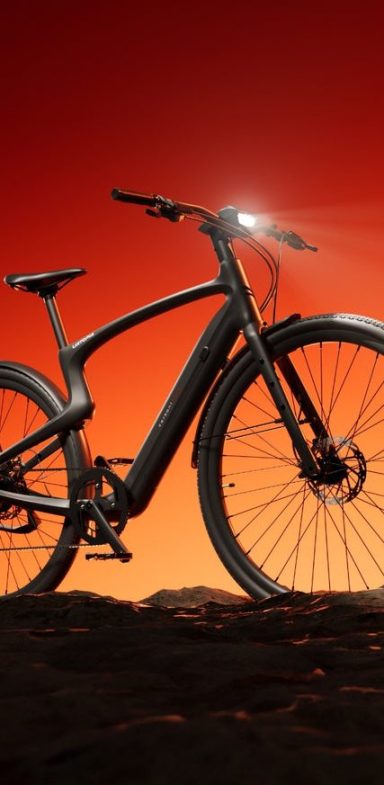 Das Modell Carbon 1 Pro wiegt dank des innovativen Carbonrahmens nur 15 kg und fällt zugleich durch seine futuristische Optik auf. Durch smarte Features wie GPS-Tracking, e-Sim und Sprachsteuerung wird das E-Bike zum modernen Begleiter.